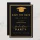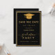 Graduation Classique Noir et Or Enregistrer la Date Invitation script de diplôme ouvert maison photo graduation. Ajoutez vos photos préférées avec une élégante calligraphie script et un collage de grille photo.