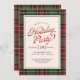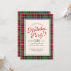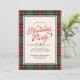 Classic Plaid Retro Script Holiday Party Invitation dispose d'un cadre plaid traditionnel rouge et vert, avec script rétro et type classique.