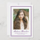 Commemorate your graduate’s achievement with this elegant photo graduation party invitation, featuring a traditional purple double border that adds a refined and distinguished touch. The front showcases the graduate’s portrait alongside their name and school in a timeless layout. On the back, a horizontal photo adds a personal element, with party details presented below for a cohesive and complete design. Suitable for both high school and college graduates, this purple graduation party invitation offers a beautiful and memorable way to invite guests to celebrate their success.