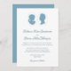 Classique et élégant, d'inspiration Bridgerton, design faire-part de mariage caméo bleu régence. Customisez avec vos noms dans une police de script élégante et vos informations de mariage dans une police serif chic. Conçu pour correspondre à notre collection de Mariages classiques Regency Caméo.