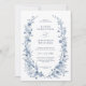 This luxury botanical winter wedding invitation features elegant dusty blue florals framed in a timeless wreath, paired with refined typography for a classic, icy winter aesthetic. The back of the invitation includes space for a personalized photo and a scannable QR code, seamlessly blending traditional elegance with modern convenience. Inspired by vintage botanical artwork and cool winter tones, this sophisticated design is perfect for formal, classic, and upscale winter weddings. Personalize effortlessly to create a polished, heirloom-style invitation that sets the tone for an unforgettable celebration.