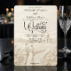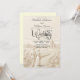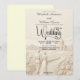 Evoke the grandeur of a traditional church wedding with this faux bas-relief design, featuring a romantic sculpted illustration in monochrome cream tones.This design features a sophisticated trompe l'oeil visual technique simulating the look of hand-carved sandstone or plaster. The central illustration depicts a winding cobblestone path leading toward a domed chapel on rolling hills, framed by a bride and groom walking away into the landscape. Lush blooming roses anchor the corners in a sculptural style, rendered in a monochromatic palette of ivory, cream, and beige to create soft, realistic shadows and highlights. The typography hierarchy utilizes an elegant calligraphy script for names, balanced by a formal serif font for the ceremony details, mimicking the precision of stone engraving.