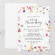 Cette invitation d'anniversaire de mariage classique avec des fleurs sauvages colorées est parfaite pour un événement moderne. Le design présente des fleurs sauvages jaunes, violettes et blanches avec du feuillage sur un fond aquarelle rose et vert.