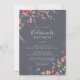 Cette invitation classique de brunch pour femmes d'honneur à la mer bleue est parfaite pour un wedding shower rustique. Le design présente des fleurs sauvages jaunes, violettes et blanches avec du feuillage dans un arrière - plan rose et vert aquarelle.