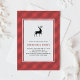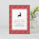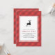 Invitation de fête de Noël Classique carreau rouge avec cerf | Invitez famille et amis à votre fête de Noël avec cette invitation de Noël personnalisable. Elle présente un motif à carreaux rouges, une illustration de cerf et une typographie classique. Personnalisez en ajoutant vos propres détails. Vous pouvez personnaliser davantage le verso en ajoutant une photo ou toute autre image.