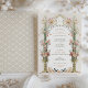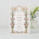 Cette faire-part de mariage est une toile romantique peinte dans les tons doux d'un jardin anglais. Les fleurs de carnation rose, corail et ivoire descendent en cascade les urnes dorées ornées, symbolisant la croissance et la floraison de l'amour. L'arcade fleurie, ornée d'une végétation délicate, encadre les initiales du couple dans un style victorien traditionnel, créant une entrée accueillante pour la célébration de l'unité. Ci-dessous, une scène pittoresque se déroule avec une famille d'oiseaux, faisant écho au thème de la convivialité. Ce design saisit l'essence de l'élégance intemporelle, parfaite pour le couple qui souhaite associer le charme classique d'une époque révolue à la joyeuse promesse de leur avenir ensemble.