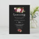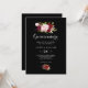 Cette invitation classique à la fête d'anniversaire de quinceañera noire tropicale est parfaite pour une simple célébration de 15ème anniversaire. Le design artistique bordo marsala présente des roses d'aquarelle, verts, roses, bordeaux et roux assortis de verdure bien disposés dans un bouquet de fleurs gracieux et radieux.