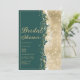 Classy luxury gold sparkle glitter wedding Bridal Shower invitation. Set against a deep green background,