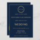 Invitation Classy Marine Blue Gold Monogramme QR Code Mariage