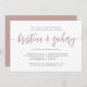 Nos élégants et modernes dîners de répétitions mariage ou invitations cocktails en rose et blanc poussiéreux présentent vos noms dans la typographie manuscrite. Personnalisez avec votre cérémonie la répétition et les détails du dîner de répétition sous. Inclut l'espace pour le moment de la répétition et l'adresse de l'église ou du lieu. Cartes inversées à bleu marine solide. Un design chic en argile rosée et blanche pour les couples modernes et les événements élégants.