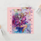 Clown rose, coloré, capricieux, drôle jouant du bugle avec un hibou expressif et des notes musicales joyeuses, fleurs, feuilles en rouge vif, fuchsia, violet, violet, bleu, couleurs blanches, aquarelle de Bulgan Lumini (c)