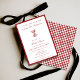 On the back, a bold deep red checkered pattern creates striking visual contrast and introduces vintage European charm, evoking country club elegance and classic cocktail lounge style. The patterned reverse adds depth and refinement, giving the invitation a cohesive, thoughtfully designed finish.