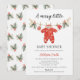 Sweet boy's clothesline merry little baby shower themed baby shower invitation featuring a red baby outfit, red rattle and Santa cap. This merry little baby shower invitation also features some winter foliage.