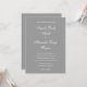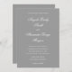Faire-part de mariage minimaliste avec une calligraphie de script de fantaisie blanche associée à une police de caractères tous casquette moderne. Customisez la couleur de police classique pour correspondre à votre mariage. Un style élégant avec un solide arrière - plan gris moderne.