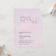 Une invitation à la douche nuptiale Cloud 9, élégante, moderne, romantique et rêveuse, avec une photo d'un ciel rose pastel, doux et rêveur, avec des nuages moelleux et le mot Nine en superposition transparente émergeant à travers et avec un effet parties scintillant rose (c'est un effet numérique, pas une vraie parties scintillant !), suggérant l'idée de flotter sereinement. Une idée parfaite pour une mariée heureuse célébrant ses noces à venir. La typographie moderne est complétée par la calligraphie classique, ce qui en fait un design classique moderne pour les mariées qui aiment le traditionnel avec un parfum moderne. Simple, élégant et étonnant.