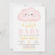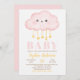 Invitation de Baby shower de fille dans un nuage rose. Cette invitation Célébrez la future maman avec ce design de baby shower moderne mignon et simple avec un nuage rose avec des étoiles jaunes. Cette Invitation de Baby shower de fille en nuage rose est parfaite pour votre événement moderne et mignon!
