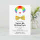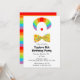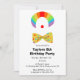 Célébrez dans le style avec ces invitations à la fête d'anniversaire de clowns de couleur arc-en-ciel. Ils présentent une illustration d'une perruque arc-en-ciel, d'un nez de clown rouge et d'une cravate arc-en-ciel à pois jaunes. Ces fournitures sont prêtes à être personnalisées avec votre propre texte.