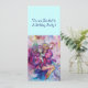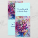 Coloré, fantaisiste, clown rose drôle jouant du clairon avec un hibou expressif et des notes musicales joyeuses, fleurs, feuilles dans des couleurs rouge vif, fuchsia, violet, violet, bleu, blanc, peinture à l'aquarelle par Bulgan Lumini (c)