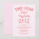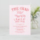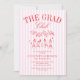 Célébrez votre diplômé dans un style chic et moderne avec ces élégantes invitations de fête de fin d'études. Avec un fond rayé rose et blanc stylé, le design met en avant le titre gras « THE GRAD CLUB » associé à une illustration ludique de diplômés lançant leurs chapeaux en l'air.