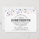 Célébrez la fête du 11 juin ! Ces invitations ont un design minimal mais significatif sur le thème de la Junetten. Au sommet se trouve un amas d'étoiles représentant les États-Unis. Au lieu de cela, ces étoiles sont dans une palette de couleurs rouge, noir et bleu. Tous les éléments de cet élément sont déverrouillés et personnalisables, y compris la couleur marine profonde solide de la toile de fond. Avec cela à l'esprit, amusez-vous à être créatif et à en faire votre propre.