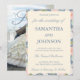 Invitation Coastal Blue Ivory Floral Monogram Photo Wedding