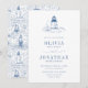 Invitation Coastal Blue Toile Lighthouse Wedding