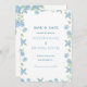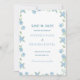 Beautiful, typography save the date invitaiton featuring hydrangeas and a light blue/navy color scheme! Personalize with your own photo and wedding website on the back.
