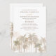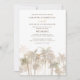 Coastal Palm Trees Beach Wedding Invitation vous pouvez facilement modifier en cliquant sur le bouton "Personnaliser". Parfait pour la destination côtière ou la célébration de mariage sur la plage. CONSEIL : D'autres fournitures de mariage, menu, programme, et bien plus sont classés ci-dessous avec cette conception correspondante pour votre commodité