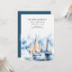 All in One Faire-part de mariage avec tous les détails, le site Web et le code qr à l'arrière. Ce design présente une belle aquarelle de voiliers naviguant gracieusement sur une mer calme sous un ciel d'été, créant une ambiance sereine et romantique. La palette de teintes douces de bleus et de crèmes évoque un sentiment de tranquillité et de sophistication, parfait pour une fête côtière sur le front de mer, au club nautique ou autre thème nautique. Veuillez naviguer dans ma collection de Mariages de bateaux à voile côtiers pour coordonner les articles ou m'envoyer un message pour ajouter les modèles supplémentaires dont vous avez besoin.