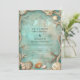 This wedding design features a serene coastal palette with soft aqua tones, hand-painted seashell details, and an elegant rope frame inspired by vintage seaside illustrations. Starfish and shell accents are balanced with refined typography, creating a look that feels romantic, calm, and timeless rather than overly nautical.