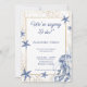 Announce your special day with this elegant Coastal Wedding Invitation. Part of the exclusive Nautical Chic Wedding Suite, this invitation features a striking navy blue and faux gold glitter theme. The upscale design showcases beautiful watercolor illustrations of starfish, sea coral, and a graceful jellyfish, perfect for setting the tone for a formal beach, yacht club, or seaside wedding. The modern, inviting template text ("We're saying 'I do!'") is ideal for contemporary couples. Highly optimized for Coastal and Nautical searches, this card is the essential first piece of your luxury destination wedding stationery. Customize all details and find matching menus, signs, and RSVP cards in the full collection!