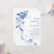 Invitation Cobalt bleu floral garland code QR mariage
