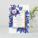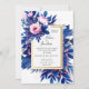 Invitation Cobalt Blue Blush Rose Floral Élégant Mariage