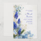 Enchant your guests with the hand-painted charm of this vibrant watercolor botanical arrangement. This design features tall, elegant muscari—known as grape hyacinth—in a rich palette of deep cobalt and periwinkle blue. The blooms are delicately intertwined with wispy golden-yellow wildflower accents and soft sage green eucalyptus-style foliage. Set against a clean, white-textured background, the airy watercolor technique creates a romantic and high-end artistic vibe that perfectly captures the essence of a lush spring meadow. This botanical border is an exquisite choice for a sophisticated spring garden wedding or an intimate outdoor ceremony. The striking cobalt and golden tones make it a flawless match for a whimsical bridal shower, a fine-art engagement party, or an elegant rehearsal dinner luncheon. It pairs beautifully with wedding palettes featuring navy blue, metallic gold, sage green, and soft ivory, offering a timeless look for couples seeking a classic romantic or modern botanical aesthetic.