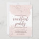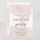 Cette carte rose d'invitation cocktail de noël d'or est parfaite pour un événement de vacances élégant. Le design comprend des pinceaux d'aquarelle rose pâle et doux avec une touche d'or faux rose brillant. Remarque : Ce design ne présente pas de parties scintillant ou de feuille d'or rose. C'est un graphisme de haute qualité fait pour ressembler à un shimmer d'or rose.