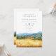 Cette élégante invitation de mariage présente une scène rustique de campagne toscane et peut être personnalisée avec vos informations en typographie chic avec le code QR de votre site web de mariage au verso. Conçu par Thisisnotme©