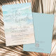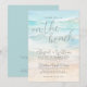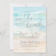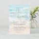 Faire invitation de mariage estival à l'aquarelle au bord de la mer. Un fond à l'aquarelle de plage aux tons apaisants de bleu et de beige prépare le terrain pour un élégant mariage au bord de la mer. L'œuvre d'art montre un gros plan de la rive rencontrant les douces vagues de l'océan, offrant une interprétation douce et légèrement abstraite d'un cadre côtier.