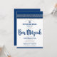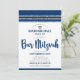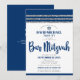 Soyez fier, réjouissez-vous et mettez en valeur ce jalon de votre Bar Mitzvah préféré ! Envoyez cette invitation de code QR personnalisée, cool, unique et moderne pour un événement inoubliable. Une typographie de script gras et bleu marine, l'étoile de David et un graphique inspiré du tallit rayé bleu marine et argenté sur un fond blanc simple. Au dos, une étoile de David blanche et un code QR scannable pour plus d'informations sur fond bleu marine. Personnalisez le texte personnalisé avec le nom de votre Bar Mitzvah, son nom hébreu, la date, les informations sur le lieu et l'URL du site web. Garantit d'ajouter une touche de style amusant à cette occasion spéciale !