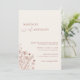 Invitation de mariage moderne et minimaliste à la crème et à la terre cuite avec calligraphie manuscrite et design sophistiqué de fleur sauvage et de papillon avec code QR et informations plus détaillées au dos.