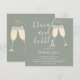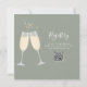 Une invitation élégante de brunch et bulles pour un enterrement de vie de jeune fille avec des verres à champagne et un nom en écriture signature, cette invitation stylée peut être personnalisée avec vos informations en lettrage chic sur un fond vert sauge. Avec votre code QR de liste de mariage au dos. Conçu par Thisisnotme©