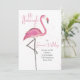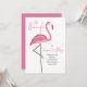 Cette conception présente un flamant rose avec un nom personnalisé, un flamant rose mignon d'anniversaire rose, des invitations à la fête flamingle, un site Web de code QR événement Facebook en ligne, une URL Web de réponse scannable, une police de caractères calligraphique stylée tendance, un style de texte calligraphique moderne, une conception chic et girly rose aquarelle, invitation à une fête en plein air, un oiseau tropical de la faune de l'île de la plage, un script décoratif stylisé créatif
