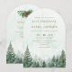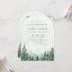Cette invitation pour l'arche de mariage dans une forêt de pins à l'aquarelle élégante et rustique peut être personnalisée avec vos informations en typographie moderne et l'adresse de votre site web de mariage avec un code QR au verso. Conçu par Thisisnotme©