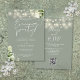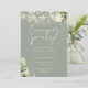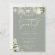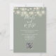 Cette élégante invitation de soirée de mariage avec lumières de chaîne florales botaniques vert sauge comprenant de jolies lumières de chaîne et de la verdure florale, peut être personnalisée avec vos informations en typographie chic avec les détails de votre site web de mariage et votre code QR au verso. Conçue par Thisisnotme