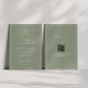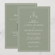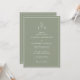 Invitation de mariage élégante avec code QR et monogramme de feuille de sauge verte.