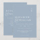 Cette invitation de mariage à monogramme minimaliste bleu poussiéreux peut être personnalisée avec vos informations et le code QR du site Web de mariage en typographie moderne. Conçu par Thisisnotme©