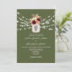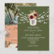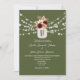 Invitation de mariage élégante, chic, boho, fleurs aquarelles, pêche et vert burgundy avec photo, site web et code QR pour rsvp.