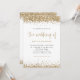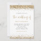 Bordures de confettis pailletés or Script Mariage. Un ensemble de typographie élégant est en or pour le titre principal du mariage qui complète le reste du texte que vous pouvez facilement personnaliser, avec des bordures de confettis pailletés or en haut et en bas ainsi que sur le dos. Ajoutez votre code QR vers votre site web de mariage au dos, cela en fait une option pratique pour que vos invités répondent et voient tous les détails sans avoir besoin de cartes de réponse et de détails séparées.