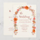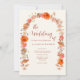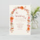 Faire invitation de mariage avec code QR sous forme d'arche de fleurs sauvages à l'aquarelle avec écriture élégante orange brûlé. Florales peintes à la main Boho chic dans des teintes orange, marron, jaune, vert, violet et rose. Modèles faciles à personnaliser pour le code QR du site web de mariage, idéaux pour la réponse en ligne et vos détails de mariage essentiels en typographie moderne et élégante orange brûlé sur fond beige. Parfait pour un mariage bohème dans un jardin en été, au printemps ou en automne. Œuvre originale de l'artiste Catherine Sweetman.