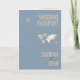 Design unique et moderne d'invitation de passeport par Savanamm, avec carte du monde à l'avant et photo de plage à l'intérieur. Ajoutez votre photo et votre code QR.