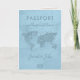 Design unique et moderne d'invitation de passeport par Savanamm, avec carte du monde à l'avant et photo de plage à l'intérieur. Ajoutez votre photo et votre code QR.